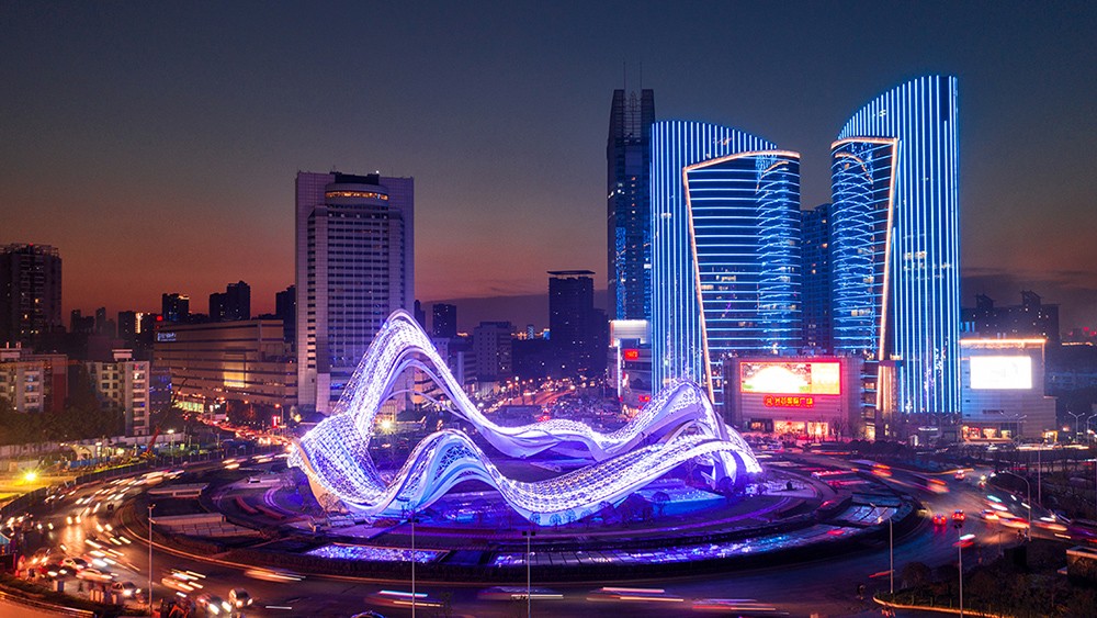 《星河》高40m 直徑90m 不銹鋼 鋼結構 設計:北京央美城市公共藝術院 2019年 位于武漢光谷廣場